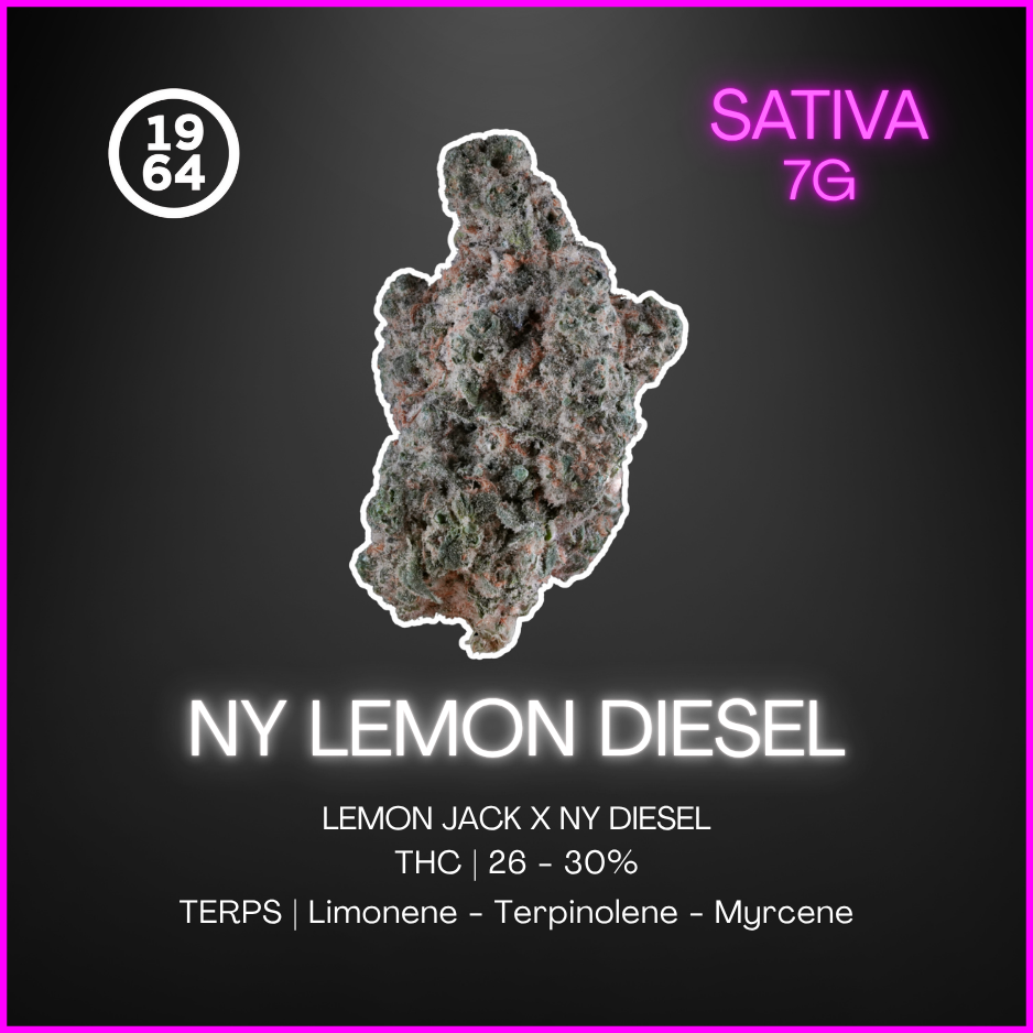 Introducing NY Lemon Diesel – a bold new sativa from 1964. NY Lemon Diesel brings an invigorating citrus twist, combining bright-lemon zest with subtle earthy undertones. Its aroma is fresh and punchy, mingling notes of citrus with a hint of vanilla for a balanced, vibrant profile. Terpenes include limonene, terpinolene, and myrcene.
