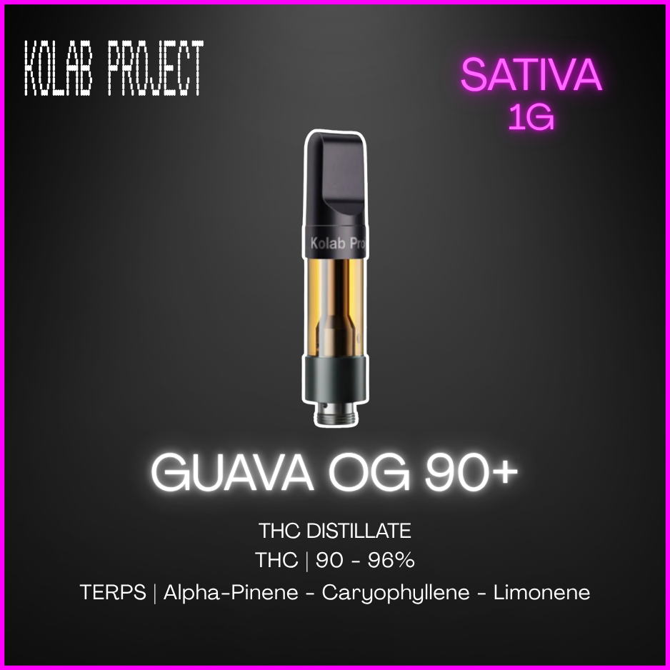 Embrace the unexpected with Kolab Project’s Guava OG Diamonds 510 cartridge, combining state-of-the-art technology with convenient design. Crafted with liquid diamonds, botanical terpenes, and flavouring agents, this cartridge offers a powerful punch of 95% THC and exotic notes of earthy and tropical guava. Made in Kolab Project’s premium hardware and paired with a black metal mouthpiece that’s smooth to the touch.