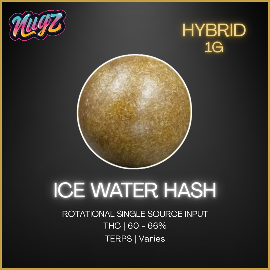 Nugz Ice Water Hash is a premium bubble hash derived from their rare genetic library, delivering true-to-strain terpene and flavour profiles. Produced using solventless extraction, Ice Water Hash is agitated and sieved in ice water to extract mature trichome heads and resin from whole buds. Nugz Ice Water Hash is offered in a rotation of single-strain genetics including Early Lemon Berry, Gelato Mint, Cuban Linx, Terple, Power Sherb, and Slapz.